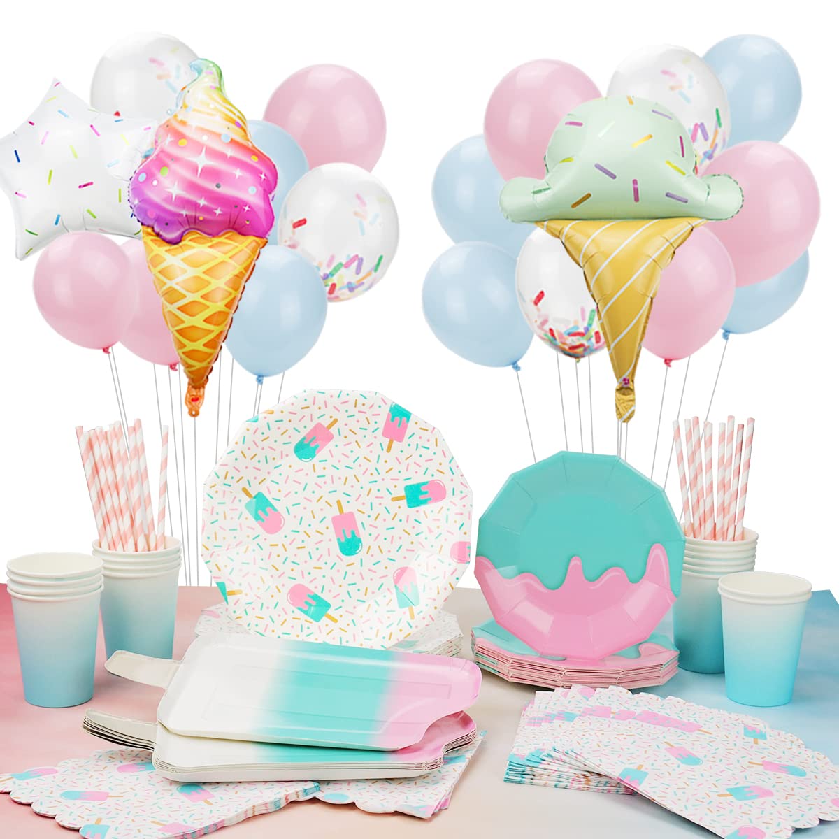 Amazon Com Ice Cream Party Decorations Supplies Serves 24 Guests Sweet Summer Party Dinnerware With Plates Cups Napkins Balloons For Girls Boys Kids Summer Birthday Party A Toys Games